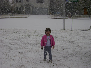 Notice how giant the snow flakes are. Texas snow is generally pretty wimpy, but this snow storm produced giant snow flakes, and four inches of snow is a lot for us. Of course, it warmed up the next day and melted away, but it sure was fun while it lasted. These pictures were taken in the front yard of the old house.